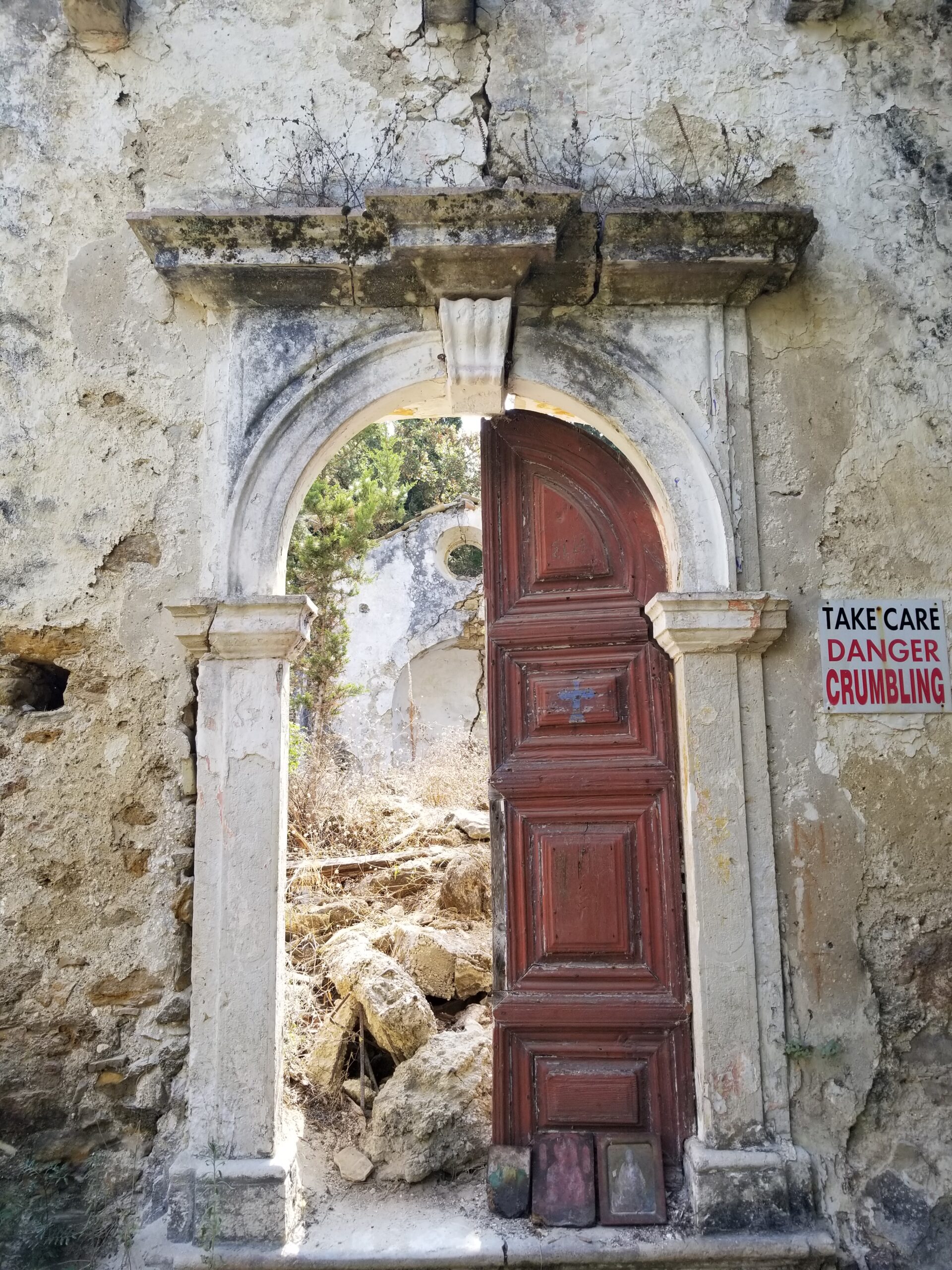 The portal of the church was made in baroque style under the influence of Venice, as it ruled the island for over 400 years, from 1386 – 1797. Throughout the island, church architecture is influenced by styles from the West, rather than those originating from the Byzantine heritage.