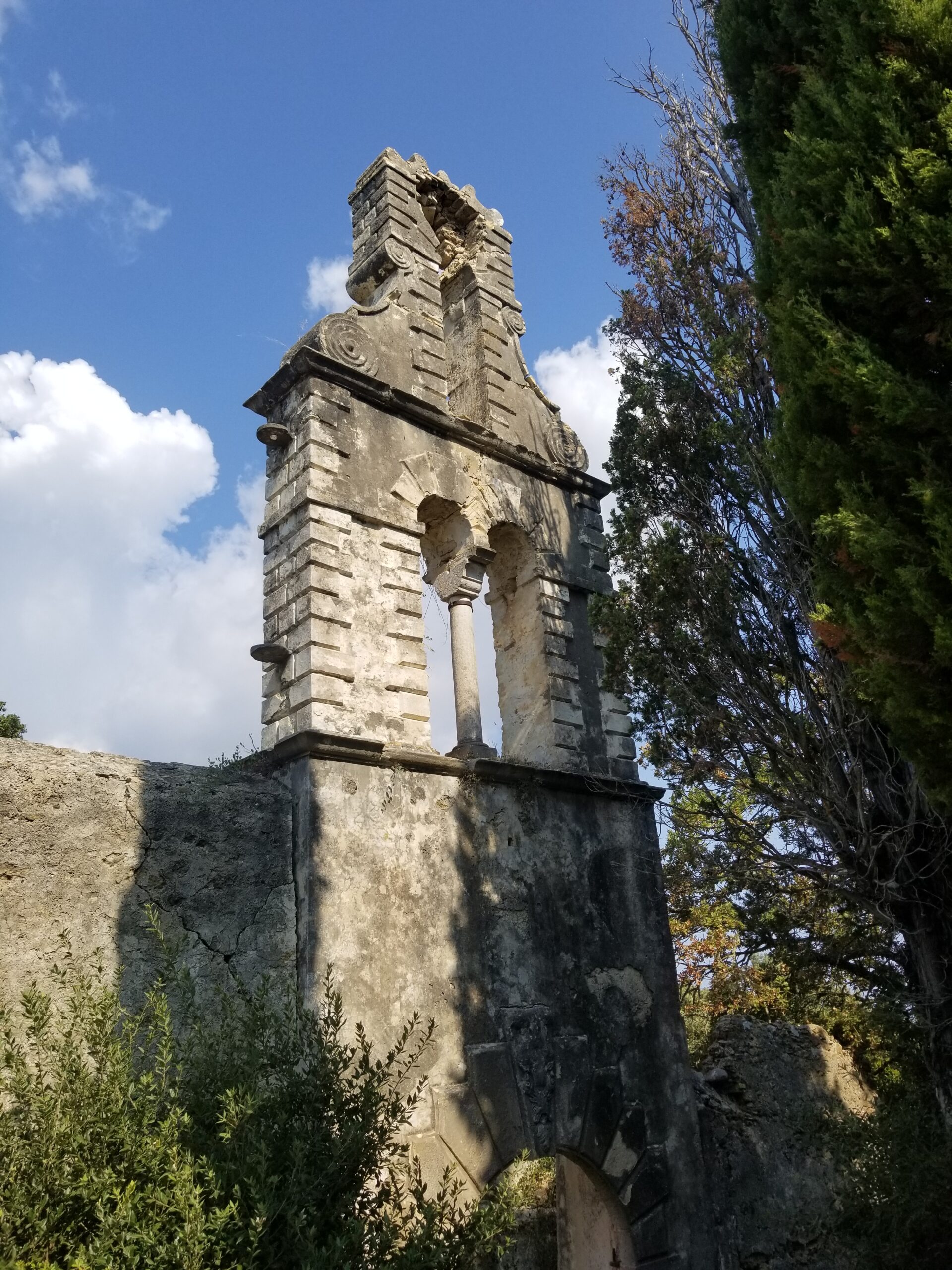 On the back side of the monastery, you can see the bell tower, characteristic of all churches in Corfu. The bell tower is separated from the church and is usually part of the fence, which in this case is the defensive wall.