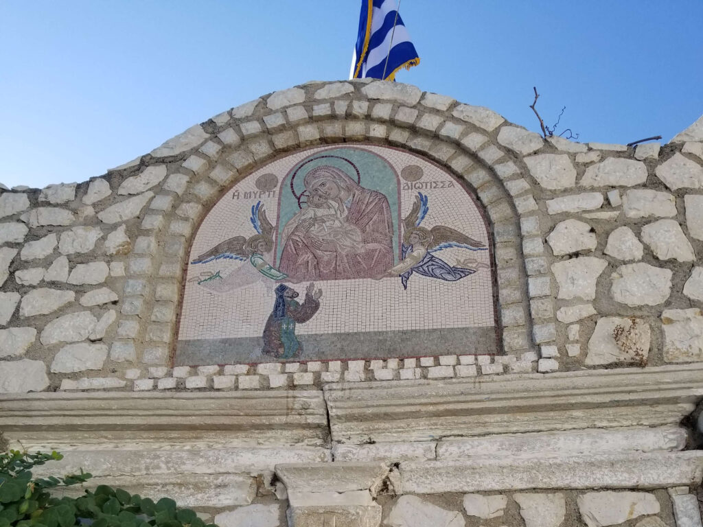 In the interior of the peninsula above Porto Timoni, there is a small cave chapel dedicated to St. Stylianos, who was the protector of born and unborn children.