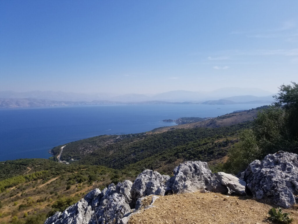 A new day brings new adventures on the island of Corfu. The whole day is reserved for climbing the highest peak of the island, Pantokrator 906 m. The hike starts from a nameless beach at 0 m.